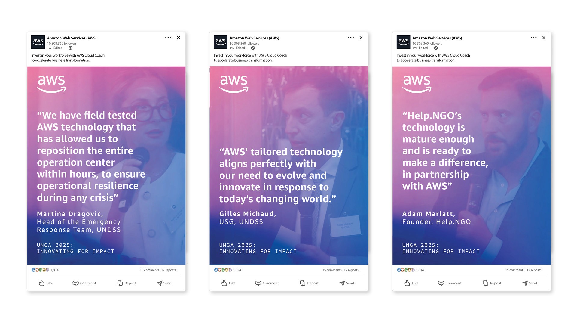 Within a week, we assembled a New York film crew, directed the shoot, and produced post-production assets for AWS’s website and social media channels. The project provided a rapid, high-quality solution, enabling AWS to showcase its initiatives to a global audience in a timely and impactful way.